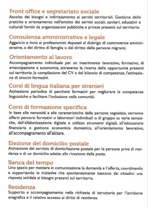 - Segretariato sociale: front office per ascolto e gestione pratiche.
