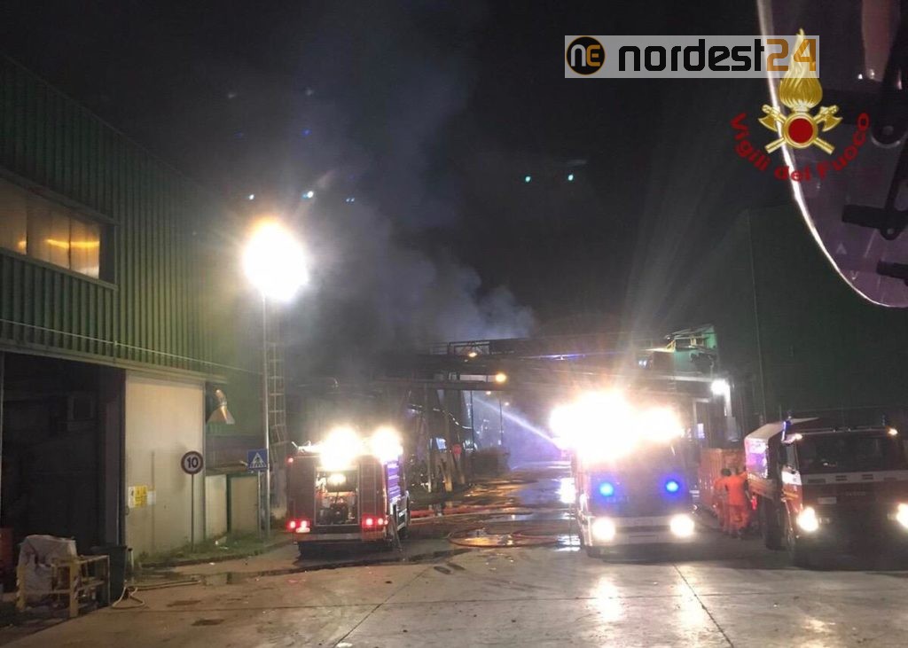 Grave incendio questa sera sabato 19 settembre 2020 poco prima delle ore 20 in un impianto di compostaggio rifiuti Snua di Aviano in provincia di Pordenone.