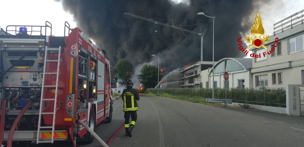 Sul posto diverse squadre dei vigili del fuoco e un grande dispiegamento di forze per cercare di domare l'incendio sviluppatosi poco fa.