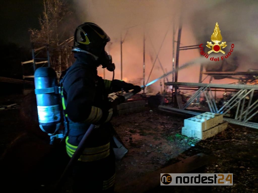 Violento incendio nel capannone di mobili: 21 pompieri sul posto