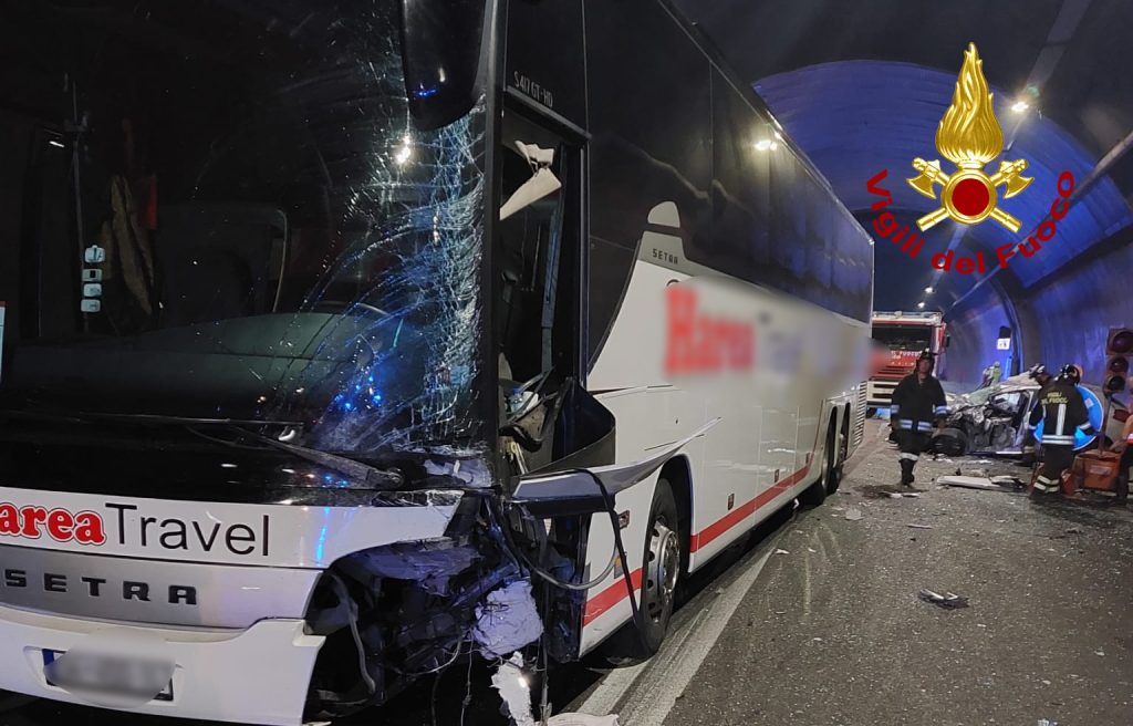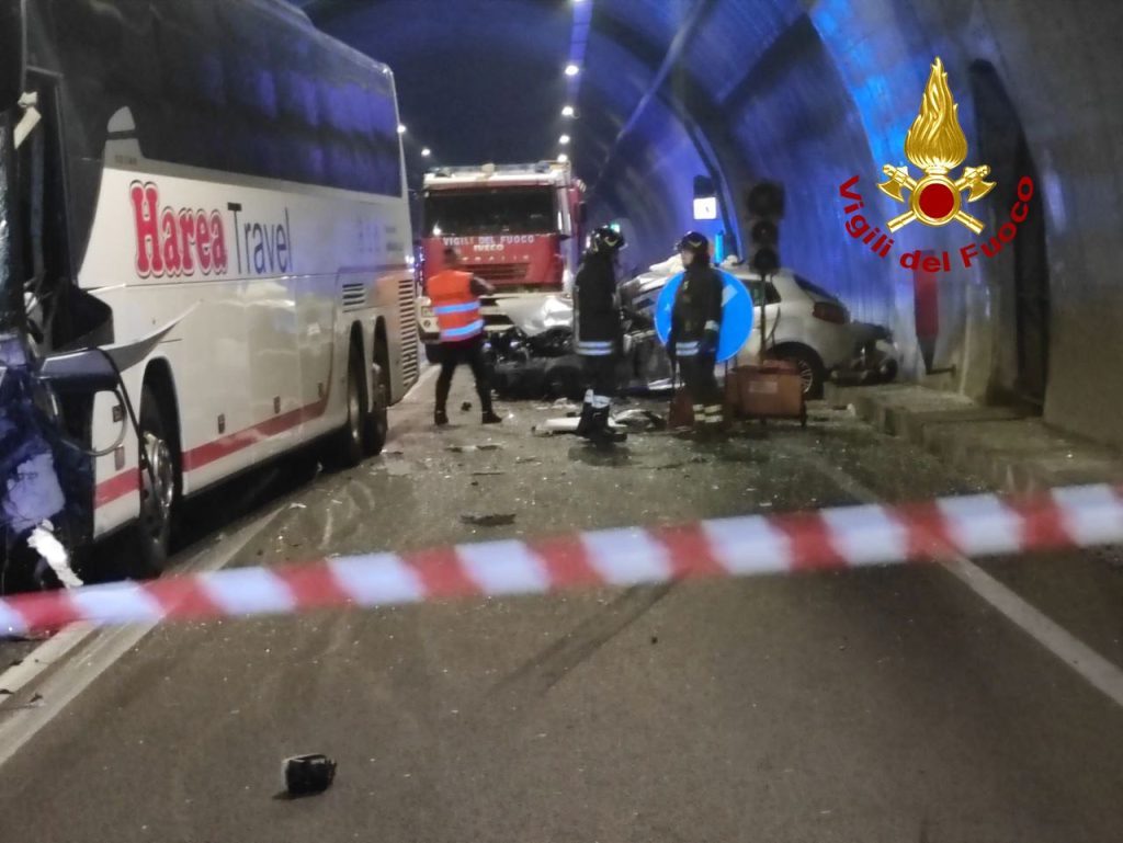 Violento scontro in galleria tra bus ed auto: tre feriti, 2 sono gravi