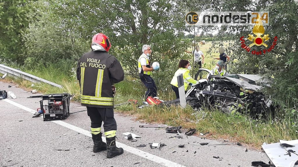 I pompieri arrivati da San Donà, hanno messo in sicurezza mezzi ed utilizzando cesoie, divaricatori e martinetti idraulici estratto il conducente dell’auto finita fuori strada, nel canale di scolo adiacente la carreggiata.