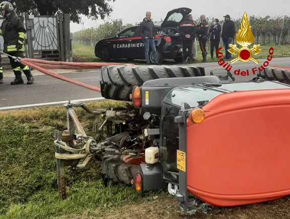 Alle 9:15, i vigili del fuoco sono intervenuti in Via Casette a Conselve in provincia di Padova per un incidente tra un’auto e un trattore finito rovesciato a bordo strada: ferito l’uomo alla guida del mezzo agricolo.