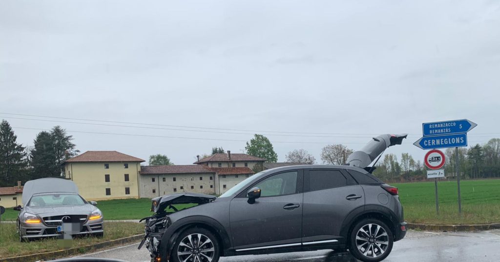 Violento scontro tra due auto a Cerneglons di Remanzacco: nessun ferito