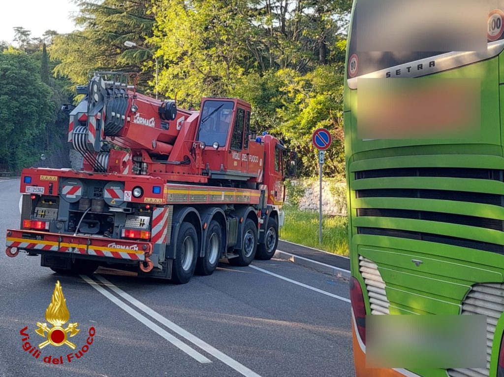 Una volta messe in sicurezza le due autovetture, gli operatori hanno dovuto richiedere anche il rinforzo dell'autogru dalla Centrale per le complesse operazioni di disincastro di un pullman coinvolto nell'incidente.