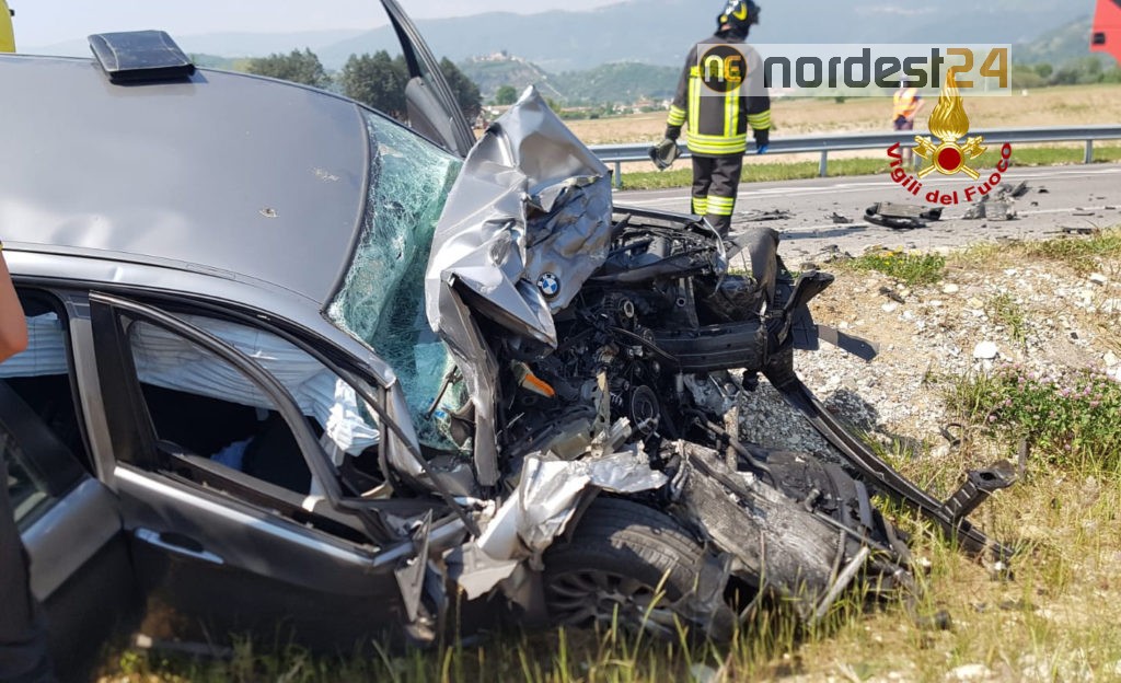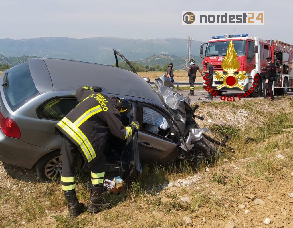 I pompieri accorsi da Bassano del Grappa hanno messo in sicurezza i mezzi e utilizzando cesoie, divaricatori e martinetti idraulici estratto il conducente della BMW 320 finita fuori strada.