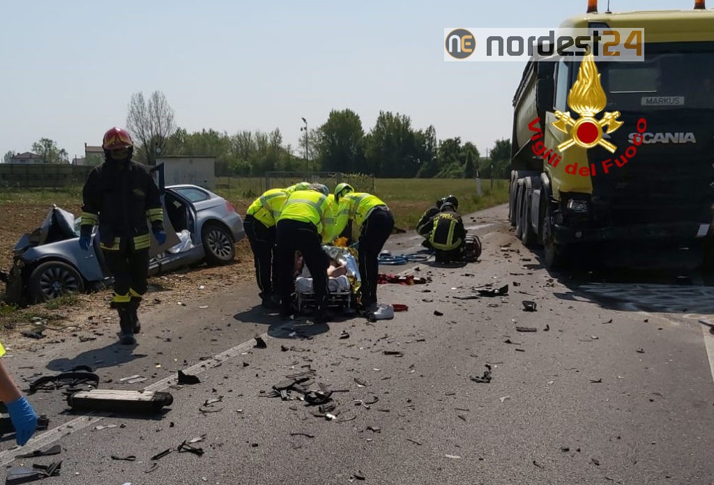 Violento scontro tra una Bmw ed un camion: un ferito grave
