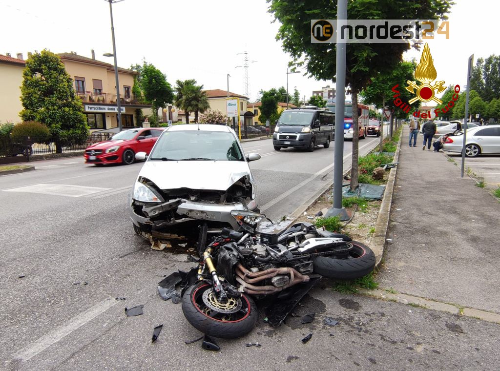 Alle 15:30, un altro intervento dei vigili del fuoco in via Padova a Selvazzano per un incidente tra una moto e un’auto: gravemente ferito il centauro.