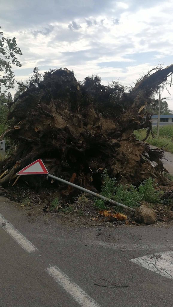 A causa del maltempo e delle forti ventate odierne, è crollato questa mattina il grande albero secolare di San Giorgio al Tagliamento, in comune di San Michele al Tagliamento in provincia di Venezia.