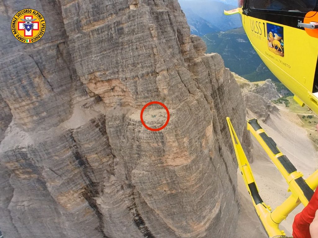 Sbarcati sul terrazzino a 2.850 metri di quota con un verricello di 40 metri, equipe medica e tecnico di elisoccorso hanno prestato le prime cure all'uomo, lo hanno imbarellato e issato a bordo sempre con il verricello, per poi provvedere anche al recupero della compagna di cordata, lasciata poi al Rifugio Auronzo.