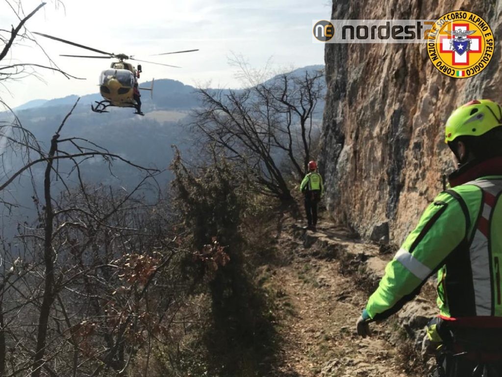 Sant'Anna d'Alfaedo (VR). Questa mattina attorno alle 11 è scattato l'allarme per un freeclimber volato per una quindicina di metri dalla parete della falesia di Ceredo alta.