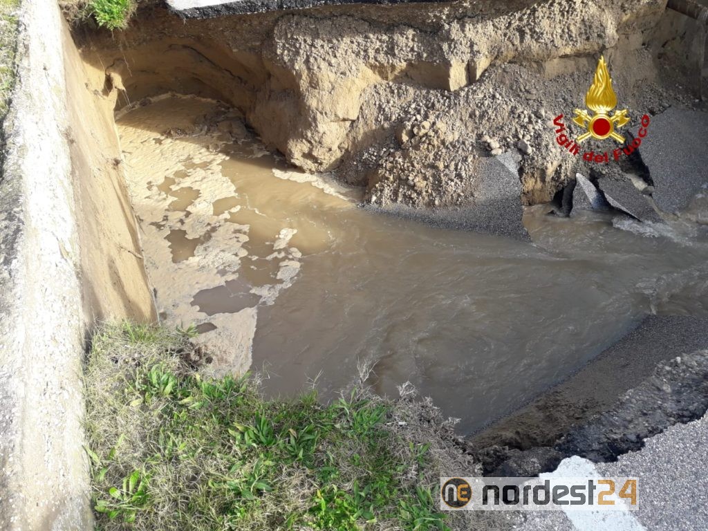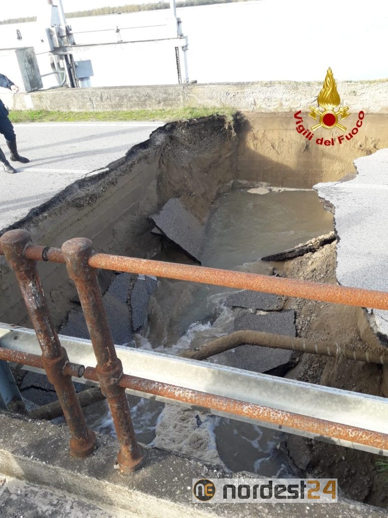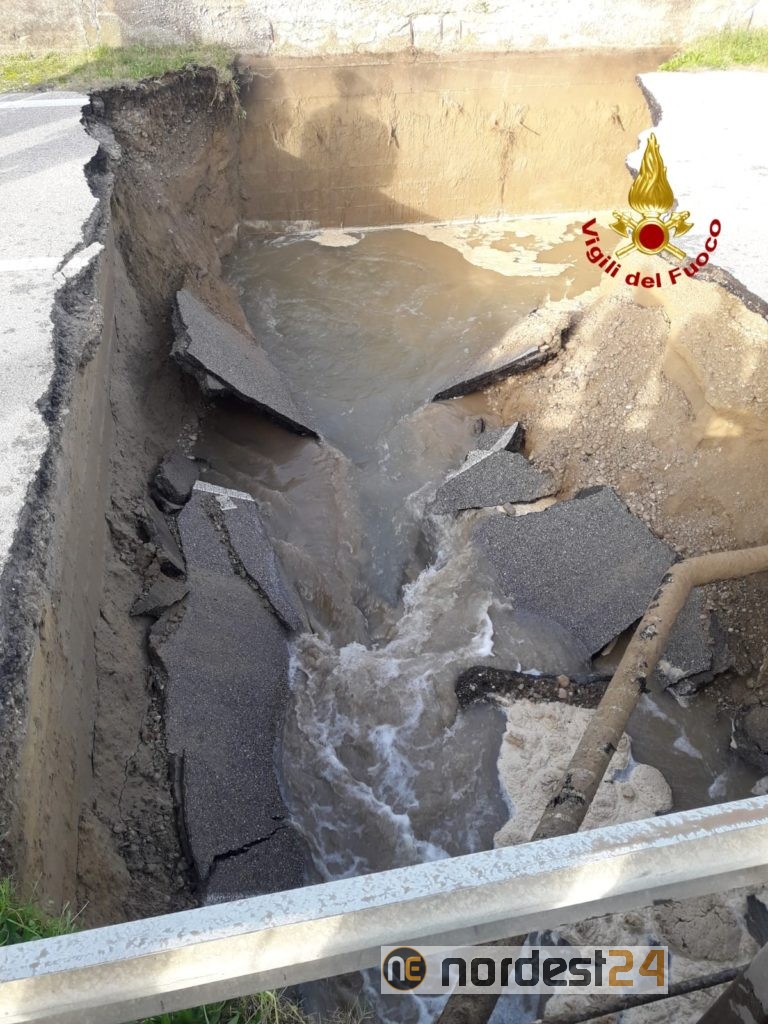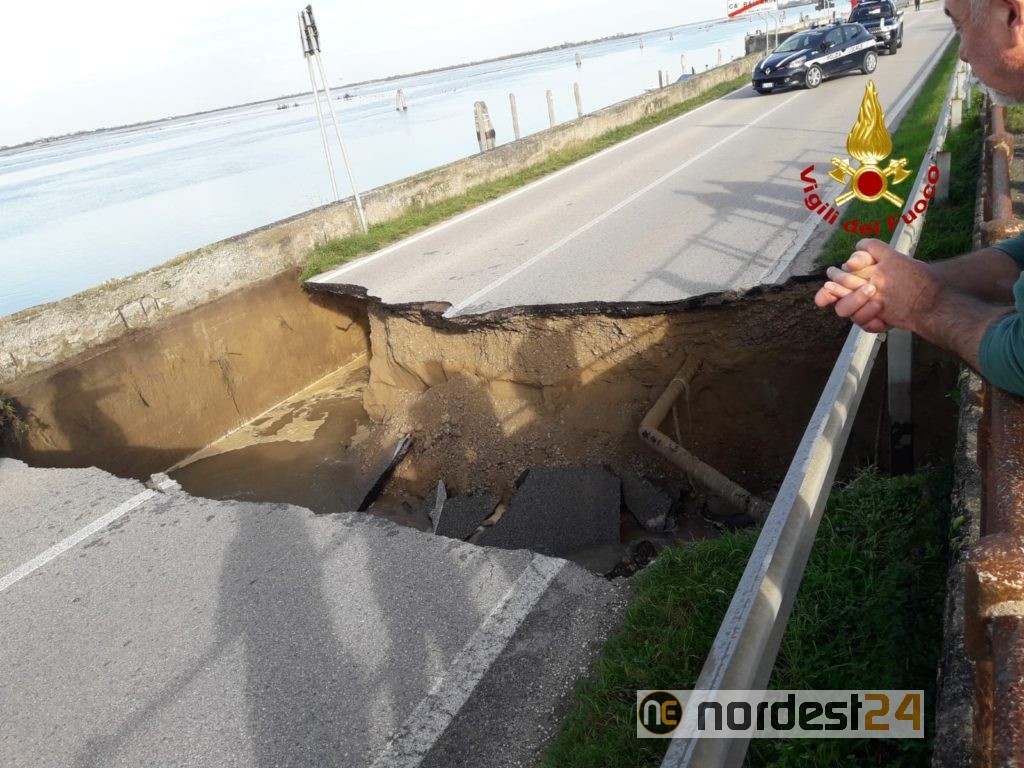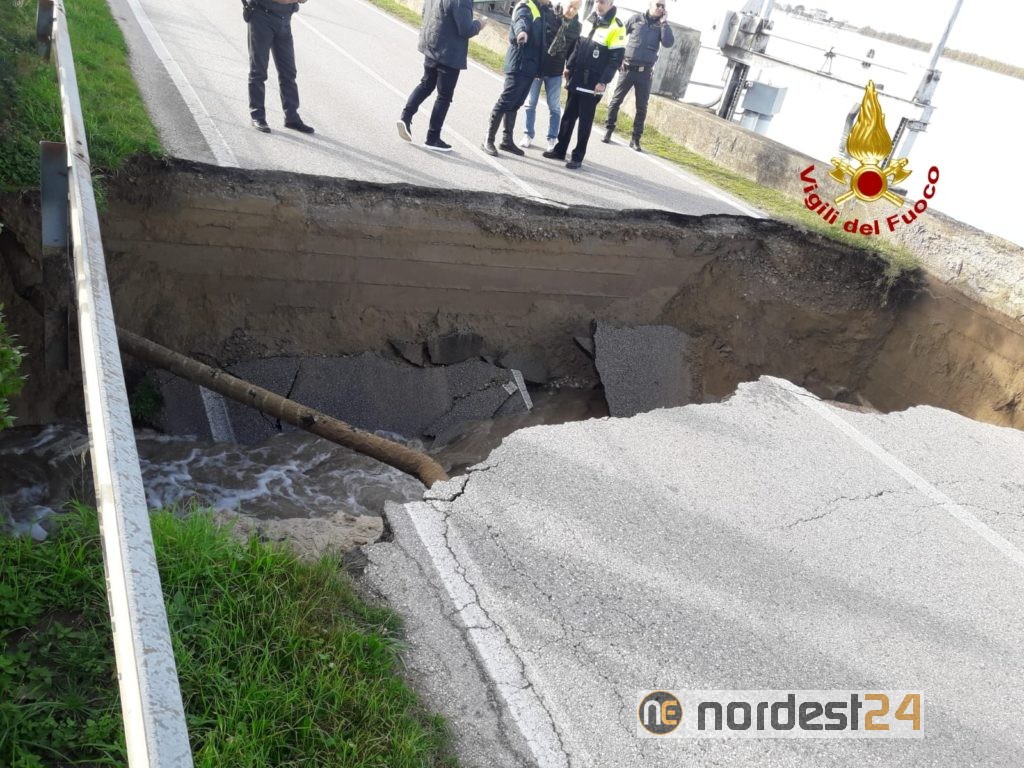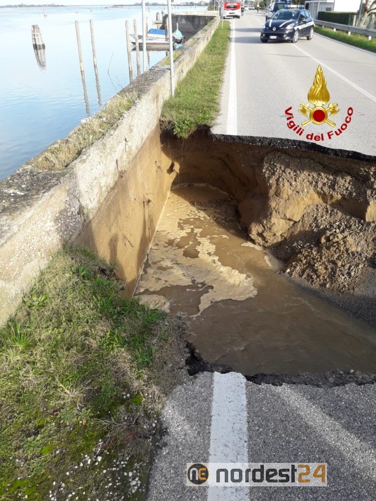 Alle 13, i vigili del fuoco sono intervenuti in via Pordelio a Cavallino-Treporti per una voragine che ha inghiottito l'intera carreggiata per un tratto di circa 10 metri.